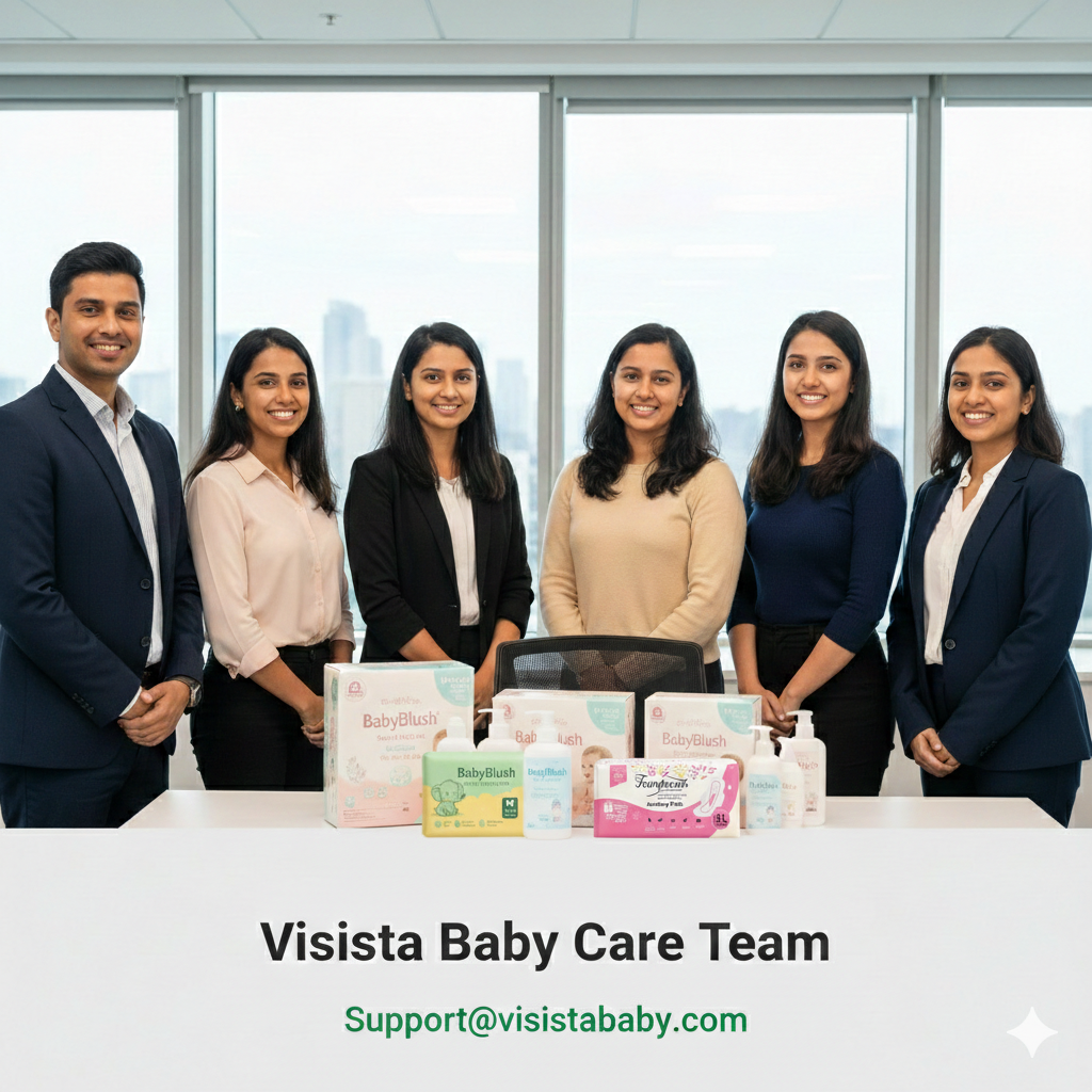 At Visista Baby Care, we believe every baby deserves gentle, safe, and thoughtfully crafted products. Our range is designed with a parent’s trust in mind—using mild ingredients that care for your baby’s delicate skin while ensuring everyday comfort and protection.